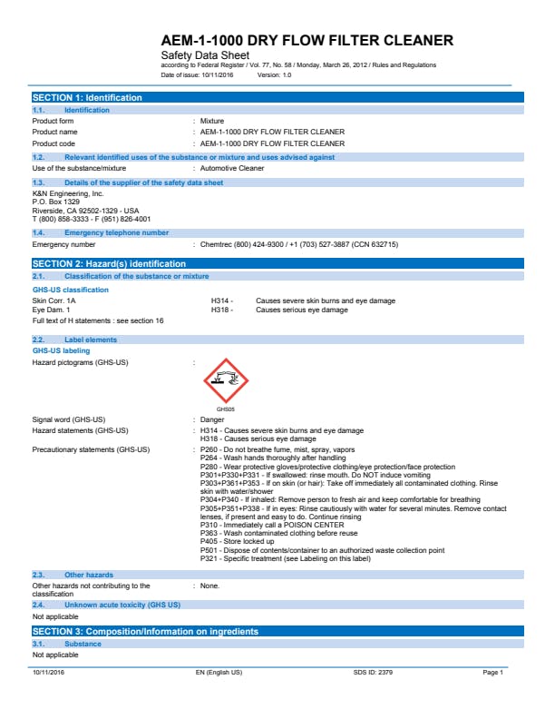 AEM Synthetic Air Filter Cleaner loosens and dissolves dirt and grime build up on synthetic filters so they can be rinsed clean with water. This cleaner is perfect for AEM Dryflow air filters and other synthetic air filters.