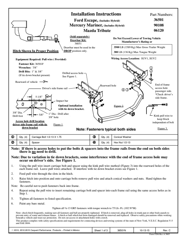 Draw-Tite's Class II trailer hitch is a receiver-style hitch rated up to 3,500 lbs. Gross Trailer Weight (GTW) Weight Carrying (WC). Perfect for light-duty towing and hitch rack needs, the Draw-Tite "Tested Tough' guarantee ensures that this hitch exceeds industry strength standards. Draw-Tite begins with Computer Aided Design (CAD) matched to manufacturer & model year for a perfect fit and top towing performance. Draw-Tite combines this with solid, all-welded construction for maximum performance and safety under the toughest conditions. The E-Coat base with black powder coat finish keeps your hitch looking good and resists corrosion for many years of service.Bolt-on installation with no welding required, and complete hardware kit and installation instructions are included. Backed by Draw-Tite's nationwide limited lifetime warranty. 1-1/4" Square Receiver Tube Opening Removable Drawbar, Pin and Clip Sold SeparatelyNeat Appearance, All Frame Attachments E-Coat Base w/ Black Powder Coat Finish Rated up to 3,500 lbs. (GTW) Weight Carrying (WC) Solid All-Welded Construction for Maximum Strength and Safety Custom Built According to Manufacturer & Model Year Ensures Perfect Fit and Top Towing Performance Computer-Aided Design and Fatigue Stress Testing Designed to Withstand Road Abuse Within Specified Capacities Backed by a Nationwide Limited Lifetime Warranty