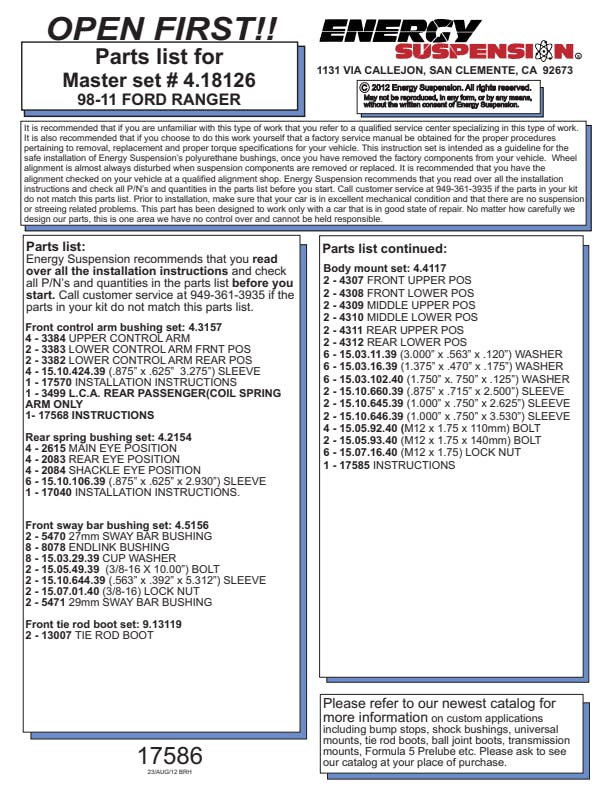 Energy's Hyper-Flex(TM) is superior performance polyurethane which has proven itself under the most demanding conditions on the race track, off-road and street performance driving, Hyper-Flex(TM) components do not wear or deteriorate from exposure to undercar chemicals such as oils and coolants and withstand atmospheric conditions like UV exposure and pollutants. Impervious to these elements, Energy's Hyper-Flex(TM) components are a great value. Not only will it outlast rubber 5 to 1 but are a cost effective performance improvement for your car or truck. Whether domestic or import, front, rear or 4WD, old or new, your vehicle will achieve that level of performance that has made Energy Suspension the most asked-for name in performance polyurethane components. All Hyper-Flex(TM) components are proudly Made in America and are available in red or black.