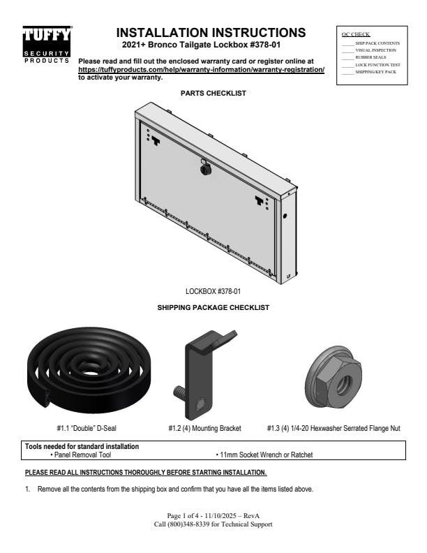 Tailgate Lockbox for 2021-2026 Ford Bronco - Combo Lock